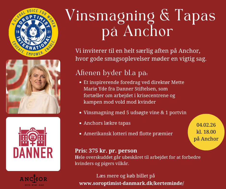 Vinsmagning & Tapas på AnchorTilmelding, brug nedenstående link Vinsmagning & Tapas på Anchor | Soroptimist International Kerteminde Tilbage