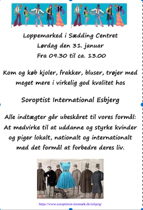 Gør et kup: Tre dage med loppemarked Så besøgt og så populært er Esbjerg Soroptimsitklubs årlige loppemarked, at man i år for første gang har valgt, at det skal foregå over tre dage. Loppemarked finder sted torsdag 23.03 fra 16-20, 24.03 fra 10-18 og lørdag 25.03 fra 10-14 i Danmarksgade 36. Udover effekter fra soroptimisterne selv kan esbjergensere, der vil donere ting og sager til markedet, indleveres i huset i Danmarksgade fra mandag til og med torsdag, de tre første dage fra 14-18 og torsdag fra 12-14 således, at klubben kan få arrangeret og prissat varerne inden åbningen den 23.03 kl. 16. De årlige loppemarkeders overskud ligger på 30-40.000 kroner, og de fordeles ubeskåret til lokale godgørende formål. I år har soroptimisterne bestemt, at pengene skal gå til sårbare børn og unges fritidsbeskæftigelse “Aktiv fritid”, og det kan både være til sport i hallerne eller til et kulturkørekort, så unge får adgang til museer og andet gratis. “Det sportslige og det kulturelle kan gå hånd i hånd. Det er ofte forbundet med en udgift at dyrke begge interesser, og nogle forældre kan ikke få plads til den slags på budgettet, og her er det så, at vores donation kan gøre gavn. Vi håber, esbjergenserne vil støtte os, siger arbejdsgruppen bag loppemarkedet. Kassereren skriver: Tak for kampen – nu kommer så regnskabets time. Årets høst blev kr. 33.394 – mod året før kr. 36.728 |