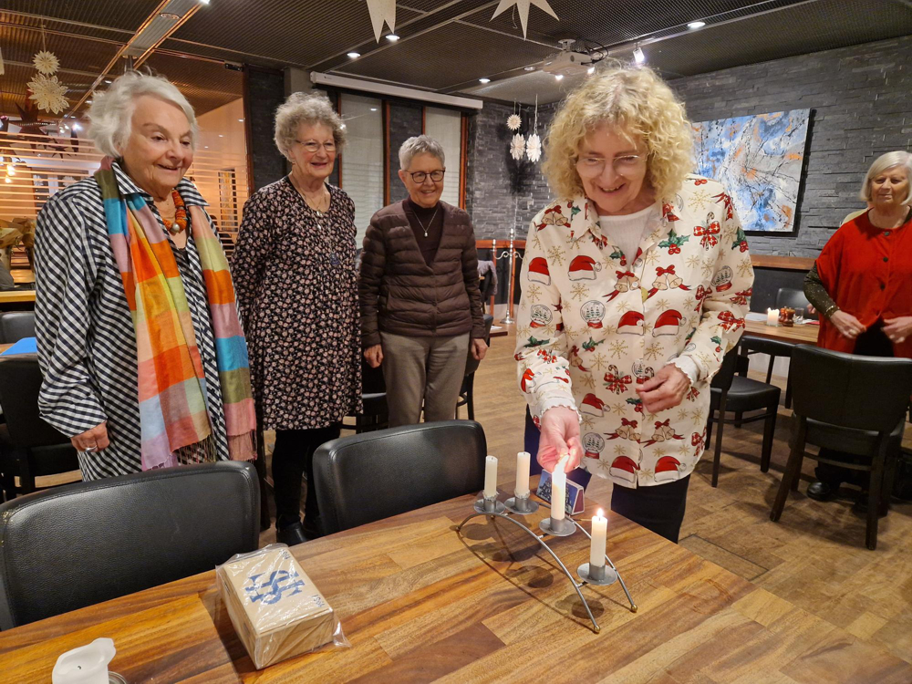 Sommermøde 3. august 2025. Vi skåler for vores medlem Karin D., som fylder 90 år i dag.