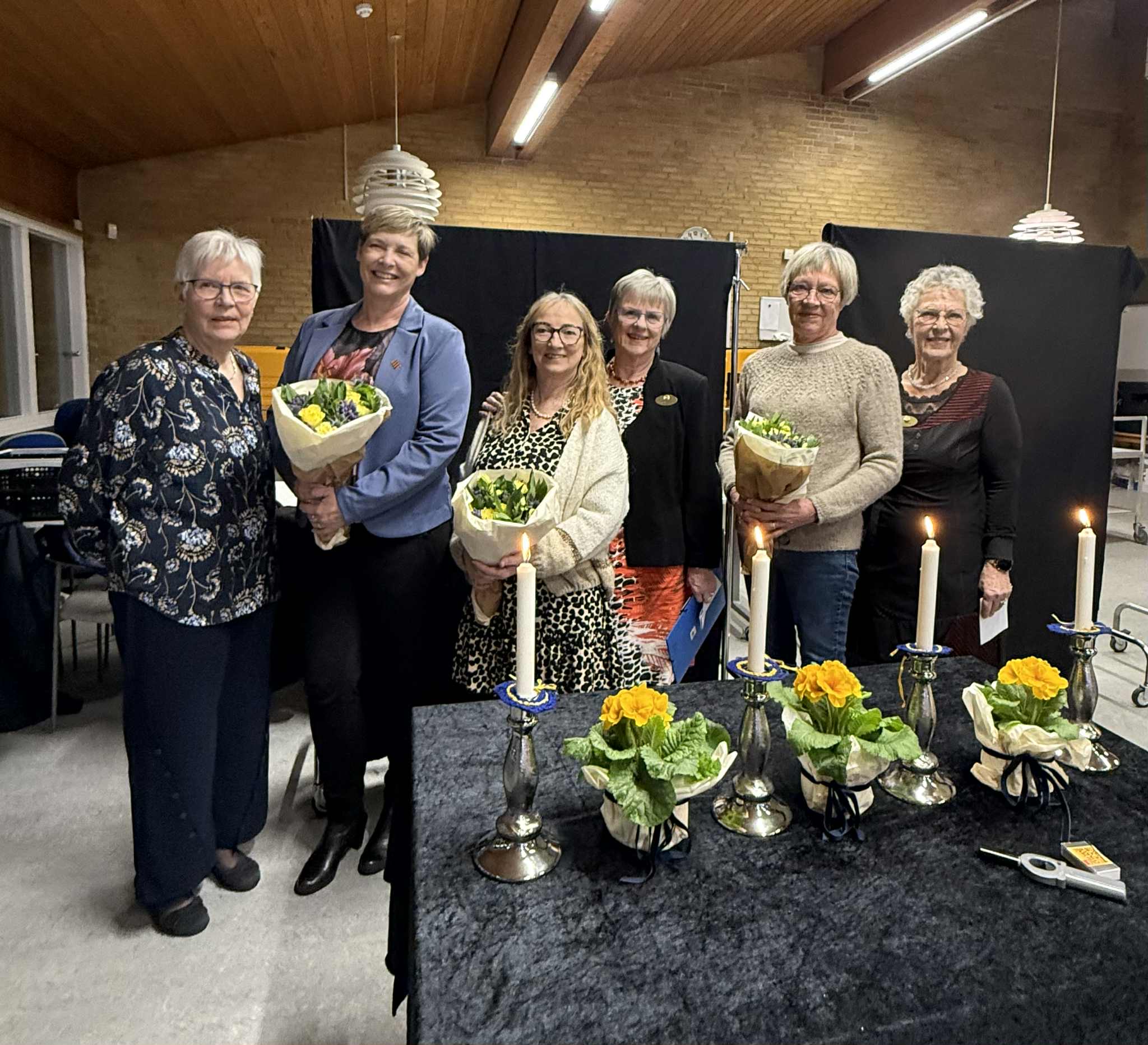 Fra v: Grethe Kristensen, mentor for nyt medlem Helle Fuglsang Hansen, nyt medlem Grethe Roness og mentor Sonja Elgaard, nyt medlem Hanne Anderson og mentor Lone Dalstrup