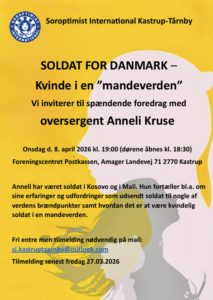 Som arrangør af denne aften fortæller vi også kort om Soroptimist International, vores klub Kastrup-Tårnby.