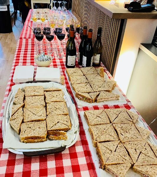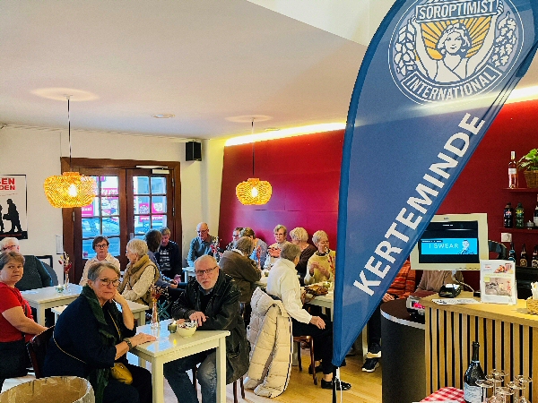 Vi bød på sandwich og vin, og Lone fortalte om Soroptimisternes arbejde i Kerteminde og i den store verden.
