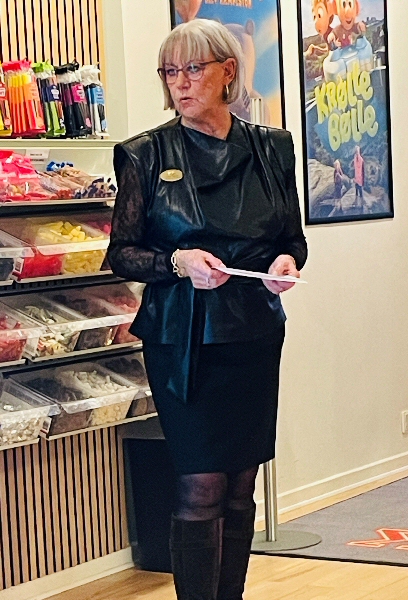 Efter filmen og en lille pause var der indlæg med tidligere medlem af Europa-Parlamentet Karin Riis Jørgensen. Karin fortalte om sin opvækst på landet, en gård nær ved Kerteminde. Det var et hjem, hvor der blev diskuteret politik og læst aviser. Her lærte hun også tidligt, at man var nødt til at arbejde og tjene sine penge, hvis man ville have noget. Det har hun praktiseret under sin uddannelse som jurist og siden i sit arbejde og politiske virke som parlamentsmedlem i EU. I Europa-parlamentet arbejdede Karin for et samlet og økonomisk velfunderet Europa. Det var og er stadig hendes store interesse. Derfor sagde hun også tidligere nej til at opstille som folketings-kandidat.