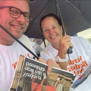 Kirsten S. Kristensen og byrådsmedlem Michael Nielsen var i hvertfald meget tilfreds med deres indsats, og der blev uddelt mange aviser.