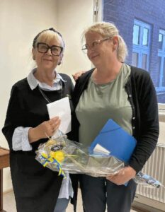 Annette og Lotte fik vin og en af Inges fine borddekorationer med hjem, med tak for deres indsats, og besøg i Kerteminde.