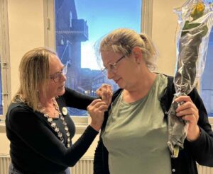 Kirsten S. Kristensen kan i år fejre sit 25 års jubilæum som Soroptimist, og hun fik derfor overrakt en gul rose.
