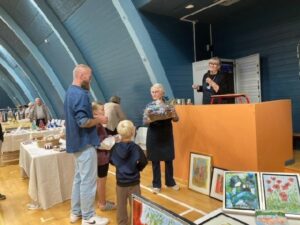 I år var vi rykket udenfor i vores lille pavillon og havde også arrangeret tombola med en blanding af købte og hjemmegjorte ting.