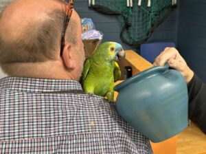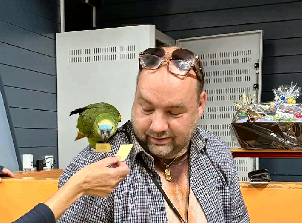 Papegøjen Jytte hjalp til med udtrækning af dagens sidste gevinst på indgangsbilletten.