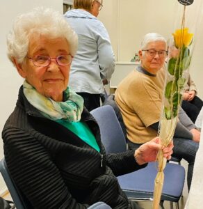 Efter spisning og lys-ceromoni fik Helen overrakt en gul rose i anledning af sit 25 år jubilæum den 30. januar.