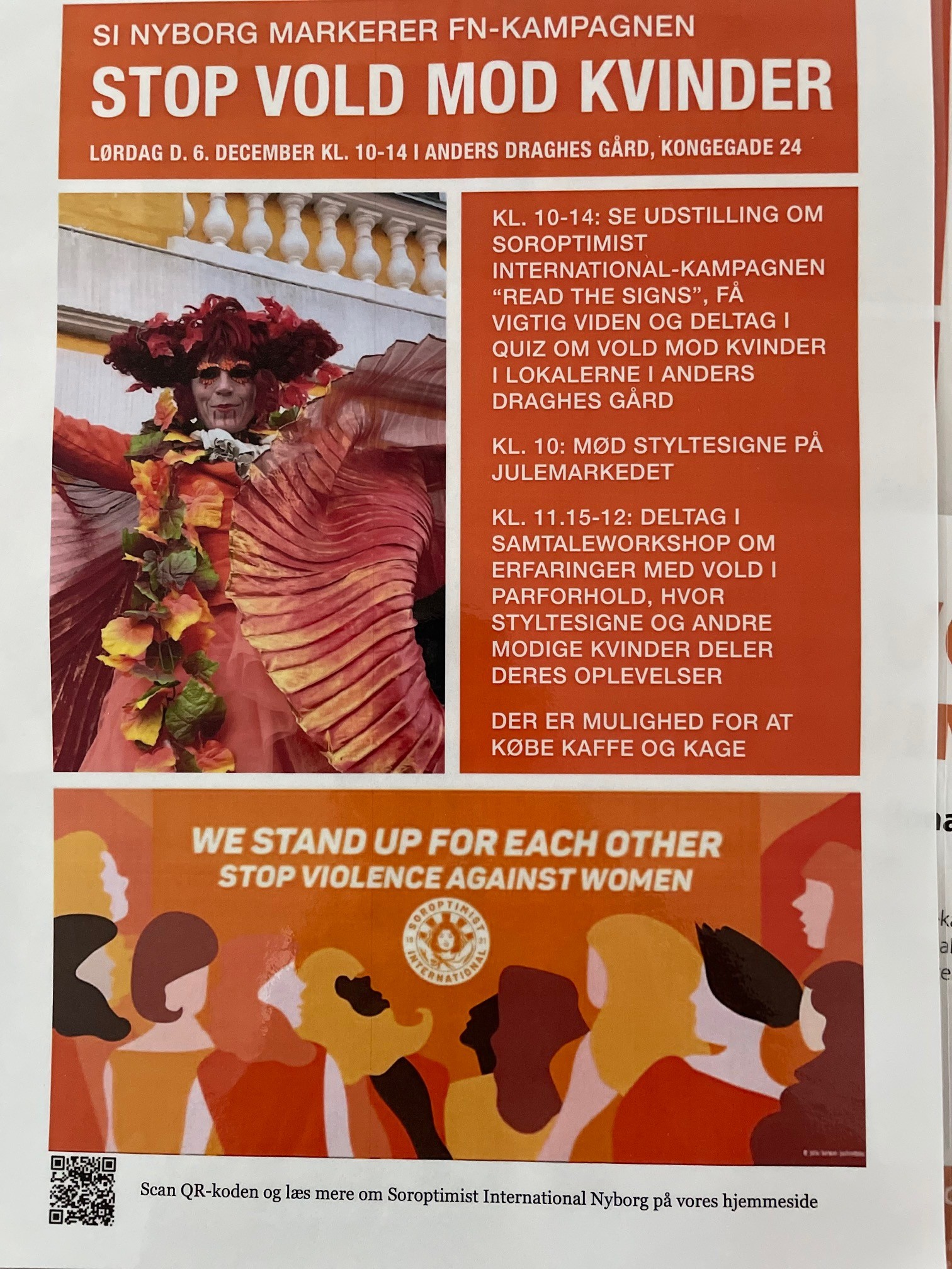 Lørdag d 6. dec. kl 10-14 Soroptimisterne i Nyborg i Anders Drages Gård i Kongegade. Kom og mød os. StyleSigne. Stop Vold. Second hand tøj. Kaffe/kage. Verdensmål kort. Tegne/male bord m slik og clementiner. Quiz. Alle er velkomne. StylteSDigne vil gå rundt i gaderne kl. ca 10-11. Workshop m StylteSigne – kom og hør og […]