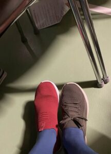 De to forskellige sko skulle gerne gøre omgivelserne opmærksomme og stille spørgsmål, hvorefter vi kvinder kan tage snakken op.
