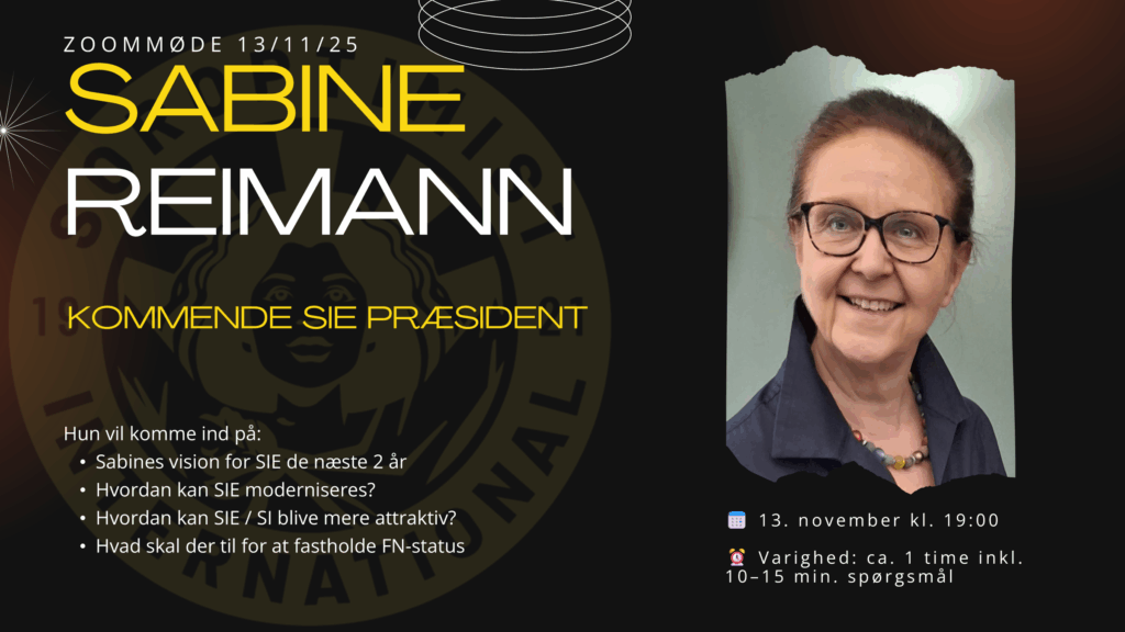 Unik mulighed for samtale med kommende SIE præsident, Sabine Reimann Nov 13, 2025 19:00.